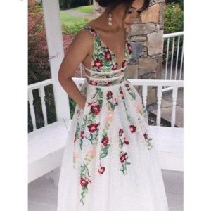 Backless Flower Decoration V-neck Sexy Formal Dress